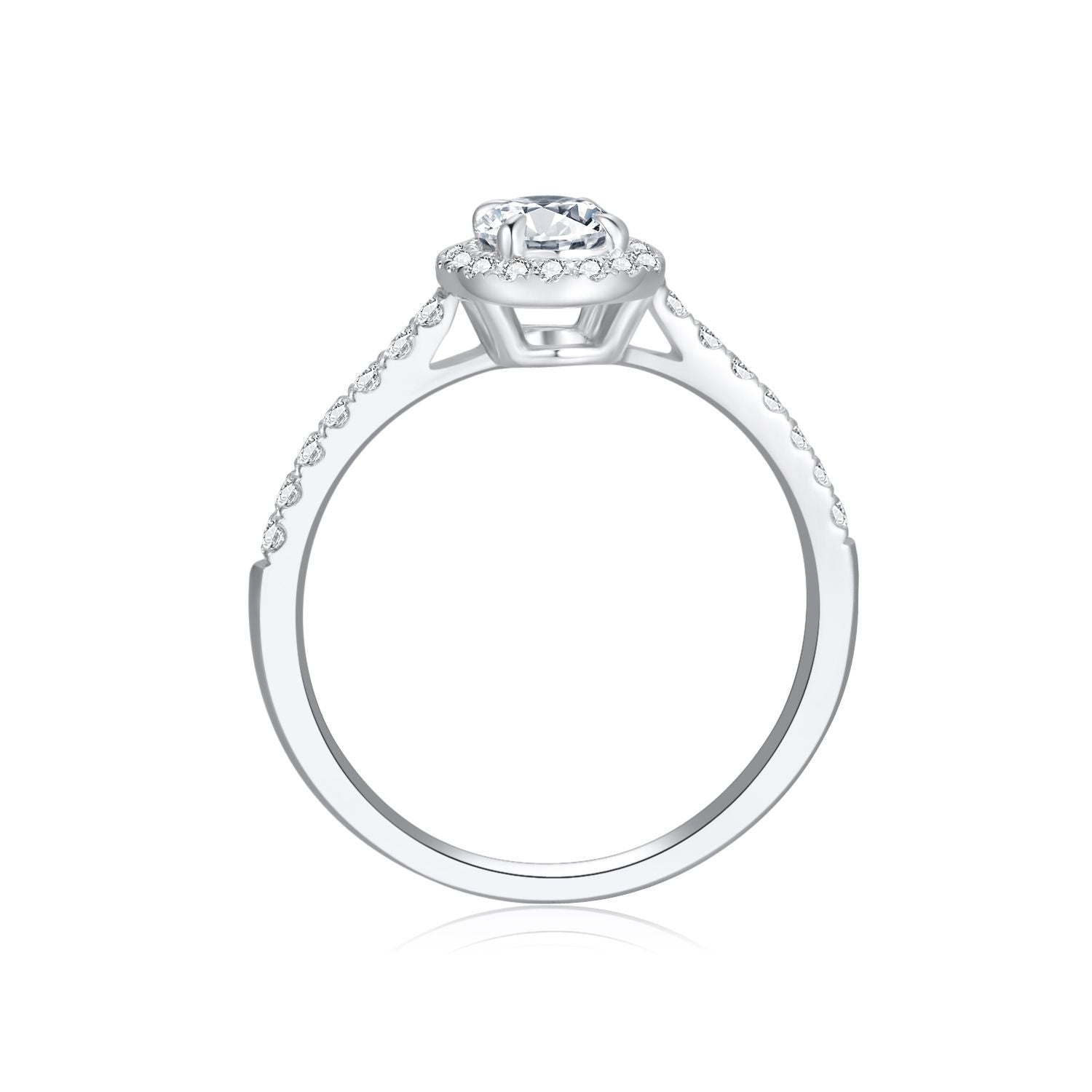 A timeless favorite. A brilliant oval-cut diamond is embraced by a delicate halo of sparkling pavé diamonds, enhancing its perceived size and brilliance. The slender band features more pavé diamonds that travel halfway down the shank, ensuring continuous sparkle from every angle. This design offers classic glamour with a modern, elegant shape.