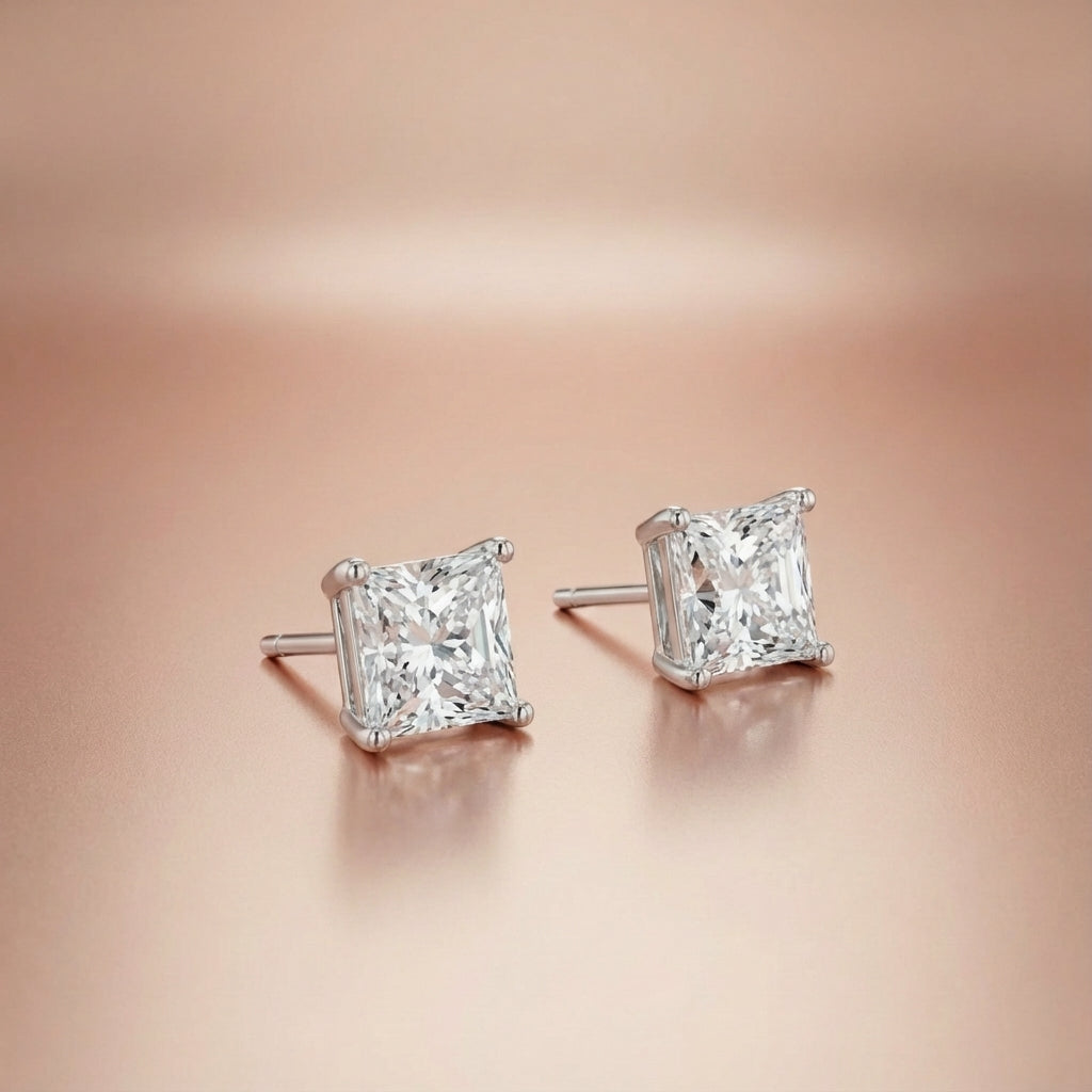 A modern classic. These stud earrings feature a perfectly matched pair of princess-cut lab-grown diamonds, celebrated for their sharp, geometric shape and fiery brilliance. The secure four-prong setting protects the corners while allowing maximum light to enter, making them a versatile choice for brilliant sparkle.