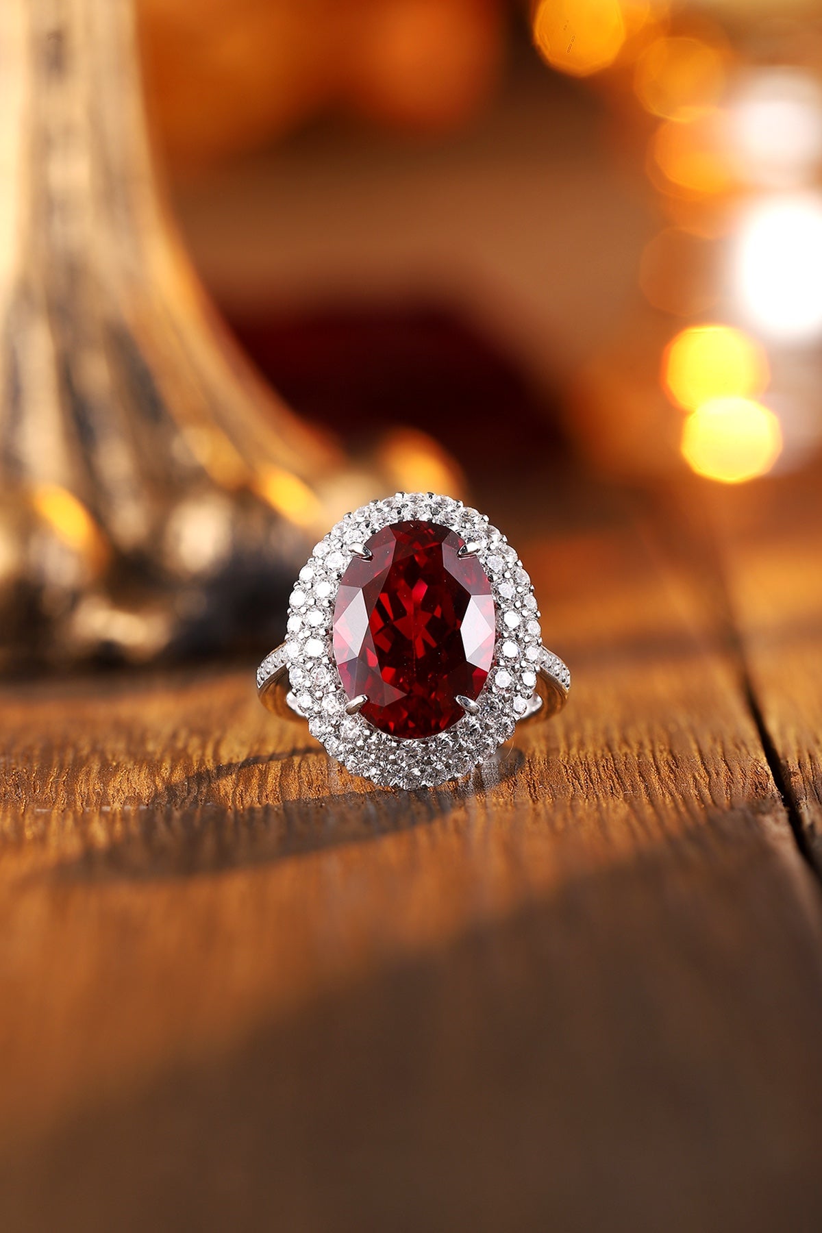 A truly show-stopping design. This ring is a spectacular statement of glamour, featuring a magnificent, large oval-cut lab-grown ruby prized for its deep, passionate red hue.